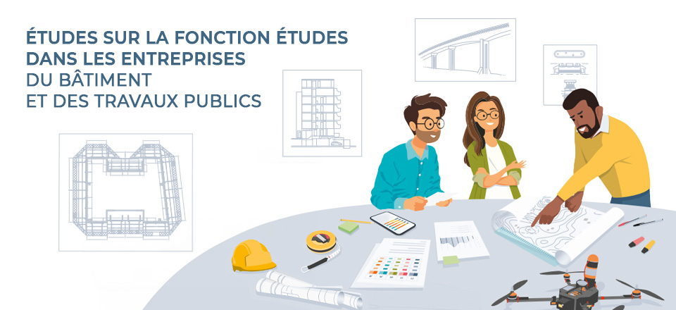 La fonction « études » regroupe l’ensemble des activités consistant à produire les plans, établir les métrés et chiffrages, définir les solutions techniques et préparer l’exécution des chantiers de construction. Ces activités peuvent être réalisées par des professionnels dédiés au sein de l’entreprise, par d’autres salariés selon l’organisation interne, ou encore confiées à un bureau d’études externe.